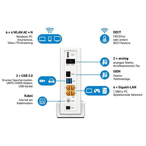 (DOCSIS-3.1-Kabelmodem, Dual-WLAN Ac+N (MU-MIMO) mit 1.733 (5 GHz) + 800 Mbit/S (2, 4 GHz), VoIP-Telefonanlage)