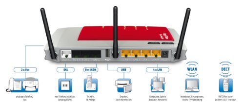 Telefonanlage analog, ISDN, DECT, VoIP mit Router und Mediaserver! AUSZEICHNUNGEN / BEWERTUNGEN / PRESSESTIMMEN:Testurteil: „sehr gut“ Fazit: „Empfehlung“Guter Rat (9/11).Testurteil: „Preistipp“ Testergebnis: „sehr gut“ Note 1,5MACup (9/10).——–Die Fritz!Box 7270 verbindet Ihre Rechner über das schnelle ADSL2+ mit Ihrem DSL-Zugang. Als WLAN-Router unterstützt sie Ihr kabelloses Netzwerk mit bis zu 300 MBit pro Sekunde. Im Dualband können Sie die 5 GHz-Frequenz nutzen.Sie erhalten mit der Fritz!Box 7270 eine leistungsfähige Telefonanlage für das Festnetz sowie für Internet-Telefonie! Bis zu 10 analoge und ISDN-Endgeräte schließen Sie an die Box an. Die Fritz!Box ist gleichzeitig eine Basisstation für DECT-Telefone, an die sie weitere 6 schnurlose Mobilteile anmelden können. Integrieren Sie auch Ihr Smartphone (iPhone oder Android) ins Heimnetz, um von der Internet-Telefonie zu profitieren.Der Betrieb der Fritz!Box ist auch über UMTS-Stick möglich !Profitieren Sie von Fritz!NAS: Die Box stellt einen Mediaserver zur Verfügung. Das bedeutet: Filme, Bilder und Musik stehen auch bei ausgeschaltetem PC auf dem Mediaserver zur Verfügung. Und zwar überall im Netzwerk!Sie schließen lediglich ein Speichermedium an die Fritz!Box an. Nun ist das Aufrufen der Dateien von überall möglich. Sie können alle Medien auf z.B. auf HD-Fernseher, Stereoanlage oder Set-Top-Box wiedergeben (UPnP-AV-fähige Geräte).Der Statt-Preis von EUR 229,90 entspricht dem Ehem. unverb. Preisempfehl. d. Herst.