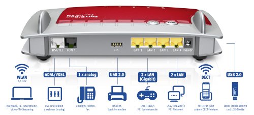 AVM FRITZ!Box 7360 Wlan Router (VDSL/ADSL, 300 Mbit/s, DECT-Basis, Media Server), geeignet für Deutschland