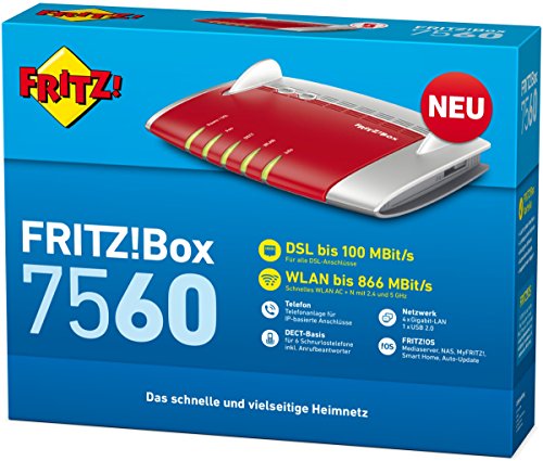 Richten Sie Ihr Heimnetzwerk komfortabel, einfach und sicher ein und genießen Sie die umfangreichen Vernetzungsfunktionen. Mit der Fritz!Box 7560 erhalten Sie ein leistungsfähiges ADSL/VDSL-Modem und einen WLAN-Router, um zu jeder Zeit auf das schnellste Netzwerk zuzugreifen.