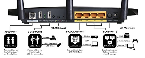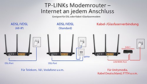 TP-Link TD-W8980B(DE) WLAN Router (ADSL/ADSL2+, 300Mbit/s 5GHz + 300Mbit/s 2,4GHz, Annex B/J, Unterstützt IP-basierte Anschlüsse, 4 Gigabit LAN, 2 USB Ports für FTP und Mediaserver)
